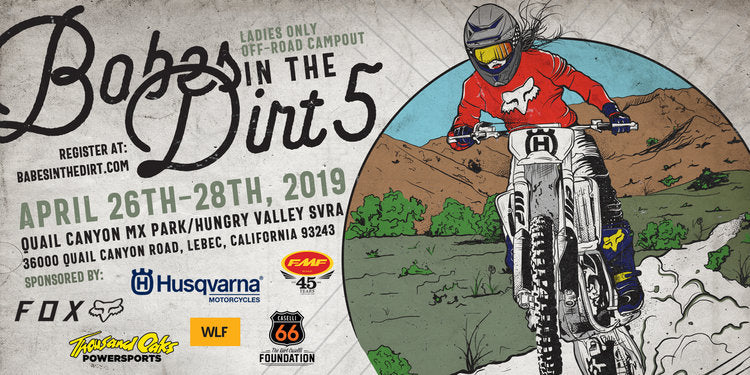 Babes in the Dirt 5 ticket sales are L I V E ! We have rented the entire Quail Canyon MX Park and group site April 26th-28th for a ladies only weekend of off road fun! You must be pre-registered to attend and tickets are non refundable.