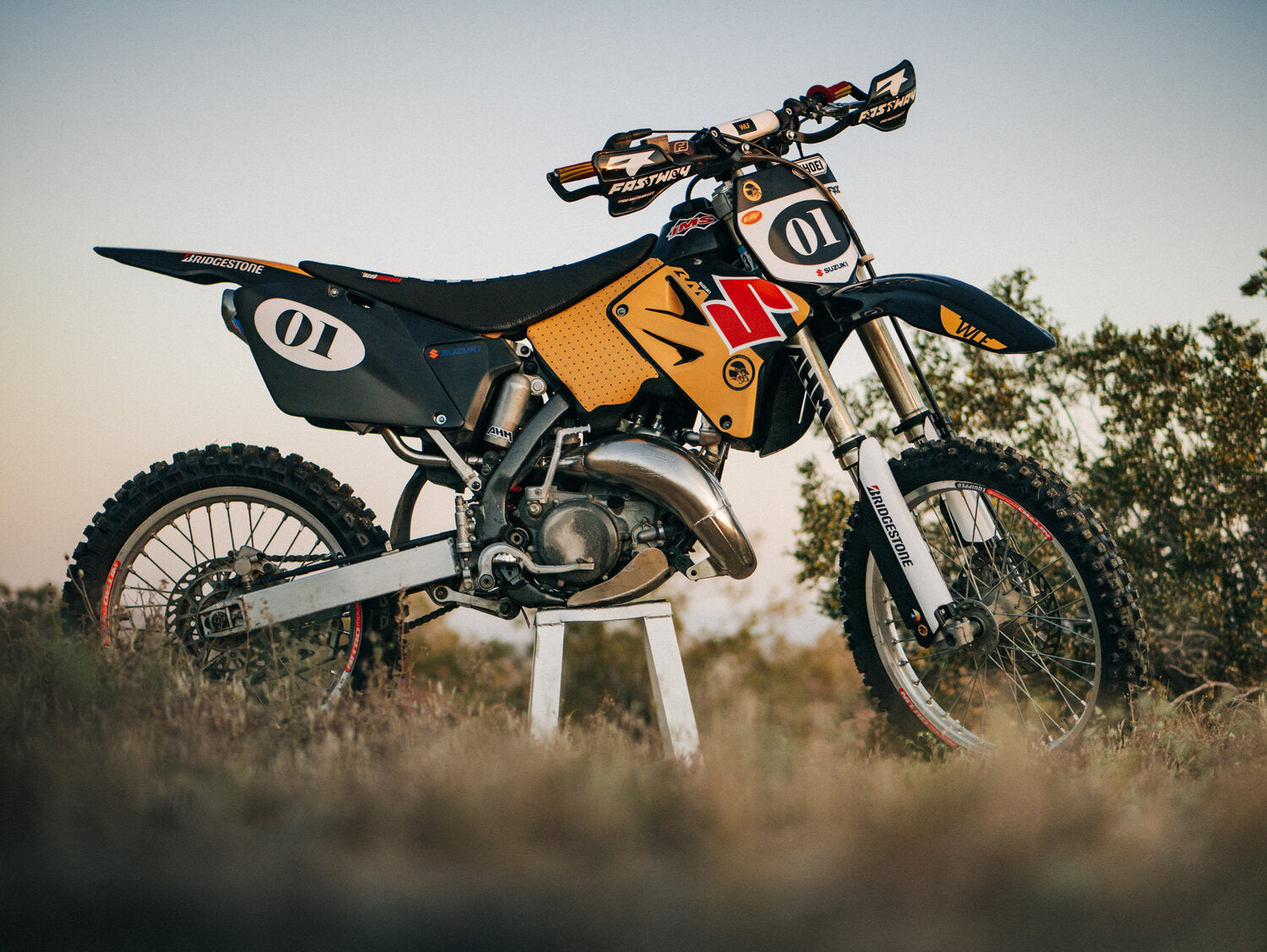 It was a process. It was a grind. It was never intended to be a show bike but came out beautiful nonetheless. This is a hard hitting, pipe screaming, trail slayer, it's light, tight, nimble and ready to rip. RM125’s HERE. There. Everywhere will be jealous and want to be cleaned up. If ya got one at home show it a pic of this beauty and know that it's 2-smoke heart beat will skip a few RPM’s.Â
