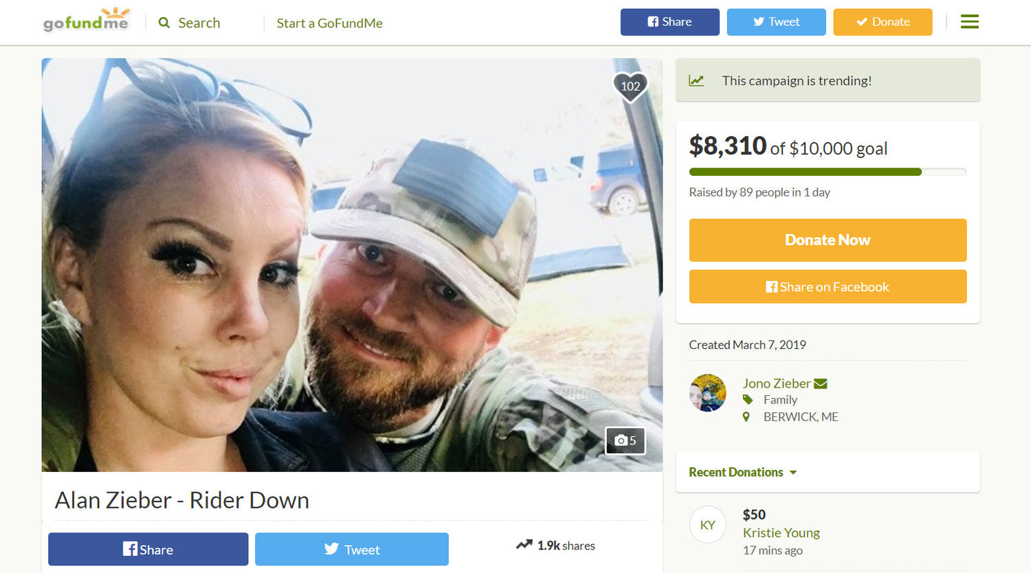 GOFUNDME LINK: HTTPS://WWW.GOFUNDME.COM/ALAN-ZIEBER-RIDER-DOWN