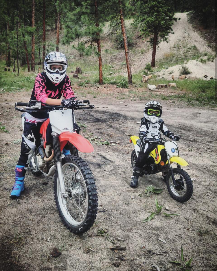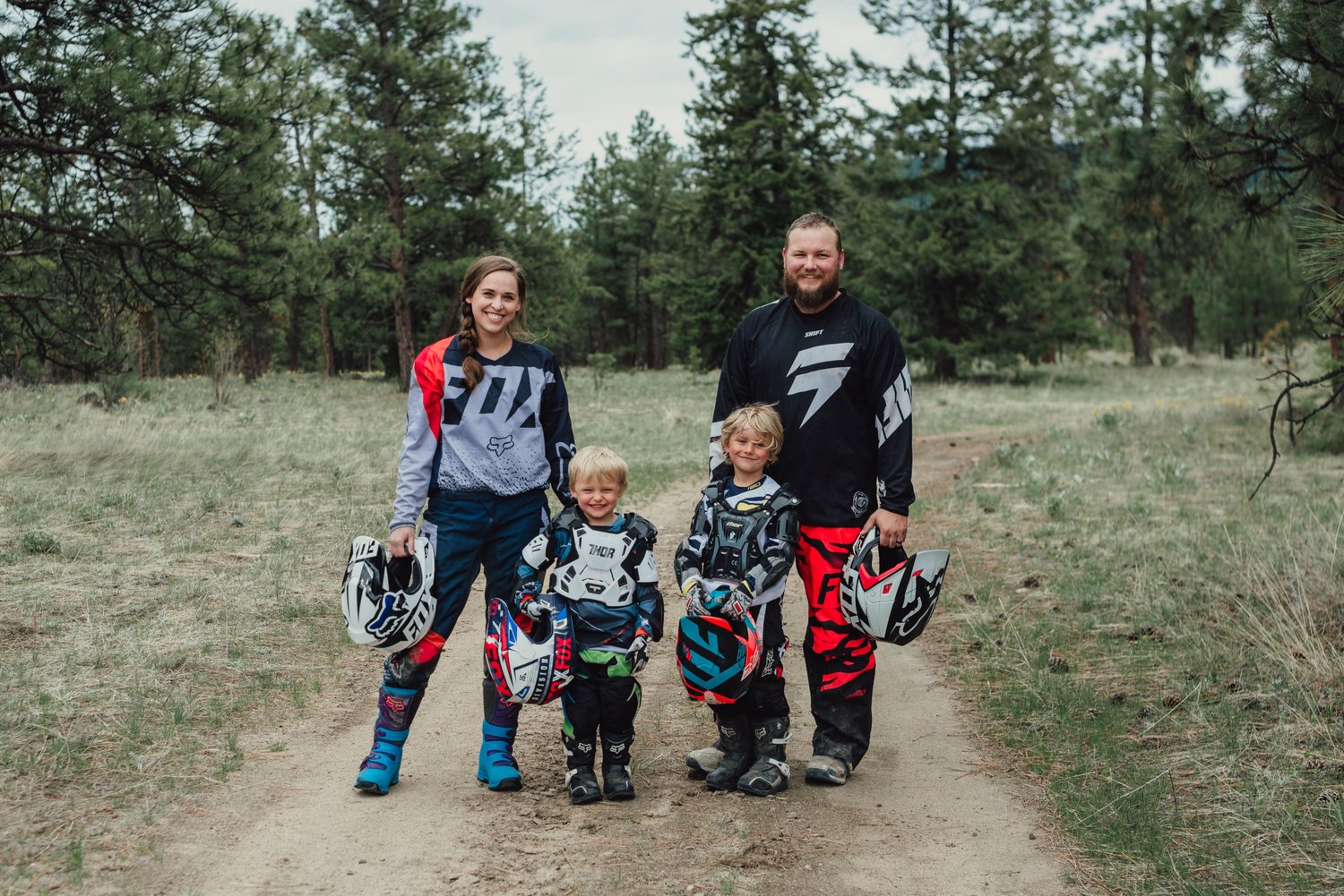 My home town of Golden B.C. is a small little town situated between the Selkirk, Purcell, and Rocky mountains. Where two heritage rivers join, the Columbia and the Kicking Horse. It’s a haven for the outdoor enthusiast. I grew up on a mountainside outside of town, where I was able to roam free. I spent my summers camping, fishing, berry picking and just exploring the woods near our home. In the winter we would toboggan, and build snow forts. I remember missing the school bus because there was a cougar at the bus stop, or a bear was in the yard eating compost. Our favorite was what we called the Tarzan Swing. It was this massive old tree off in the bush that someone, years before my time, had tied a rope too. We would hold on tight and hurl ourselves down the hill, swinging around the tree to a not so soft landing on the other side. You would think that in such an ideal environment that dirt bikes would have been a given. However I didn’t start riding until much later in life.