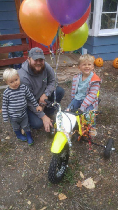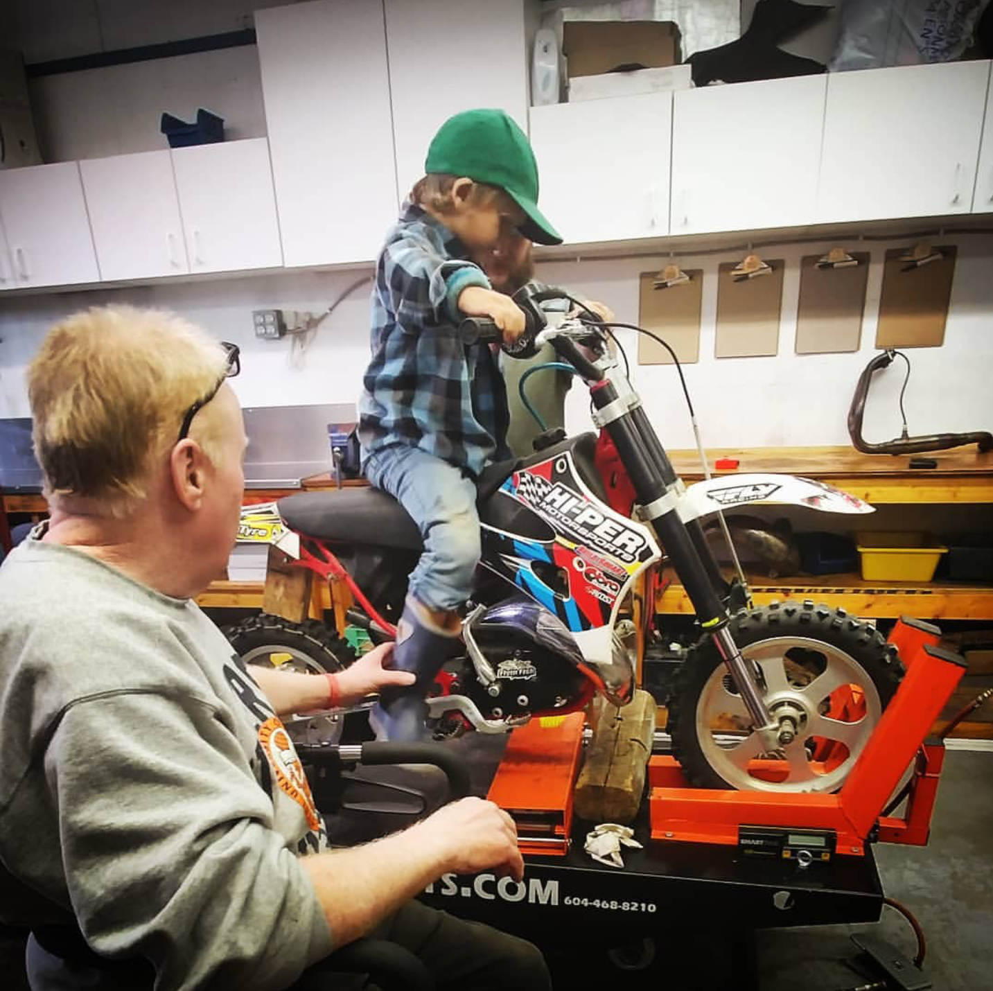 Fast forward to 2016. Al and I are married, have two young boys, and are living in the sunny Okanagan. Spencer, our oldest, was 4 at the time and dreaming about dirt bikes. He would wish on stars, and drop not so subtle hints about wanting a “kid sized dirt bike”. Al grew up riding, racing, and rebuilding dirt bikes, so I suppose it was in his blood. Spencer turned 5 that October, and we surprised him with a Suzuki JR50 – he was over the moon. Around that time Al suggested we sell our 1964 VW single cab and outfit the rest of the family with dirt bikes. To his surprise, I agreed.