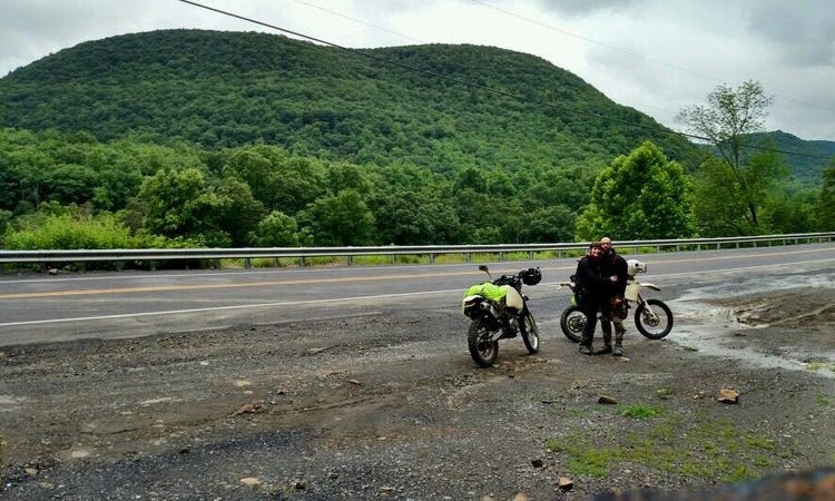 I would watch videos of Adam ripping through trails that made me long for that same adrenaline feeling. My first motorcycle was a 1972 Honda CL175. I quickly outgrew it and moved on to a 1992 Suzuki DR350. That’s when I began learning how to ride off-road. The conditions weren’t ideal the first time I went out. It was a cold March day with snow and mud covering everything. I constantly slipped around, got stuck in thick muddy puddles, and went through trails where I was just waiting to wipe out — but I loved every second of it. I was challenging myself and learning how to handle my machine in a completely different way. I then started tagging along with Adam, and attending group meet-ups with Pittsburgh Dual Sport to get used to riding a variety of terrains, attempting hill climbs, and learning the ways of the trails. The more I rode, the more I wanted to learn as much as possible. I longed to be one step closer in accomplishing obstacles that I had at first only dreamt about.