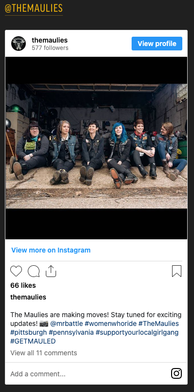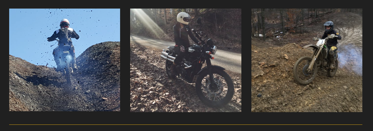 I’m also a part of theMaulies— a female riding group in Pittsburgh where we strive to carve out a space for female riders in our area. The ladies in our group rides street, but I am excited to say that two ladies have even started to enter the world of off-road (& that just makes me even more pumped —more woman entering the wonderful world of riding dirt)! We have recently worked withMothership Motofor an upcoming event bringing women riders (and women interested in riding) together, along with other moto events to make our community even stronger.