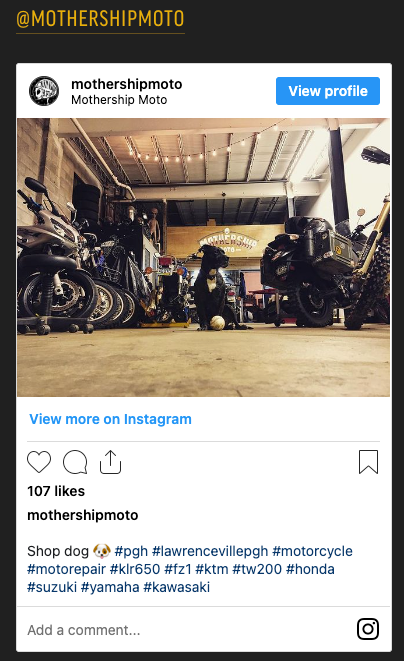 Since I have started riding there has been so much growth in the local riding community. Mothership Moto, a new motorcycle repair shop co-owned by my boyfriend Adam and two of my close buds James and Jason, is exactly what Pittsburgh needed. Not only are they a repair shop, but they are building a community in the city with plans of awesome events & rides. They have only been open a few months (opened November 2016) and the boys already have a garage full of bikes from dirt bikes to cruisers! I find myself there a lot and it’s incredible to be by their side witnessing all the rad things they are doing for the city.