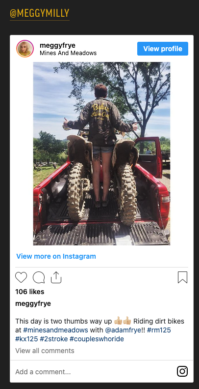 I’ve been lucky enough to meet someone who has shared riding with me. I have met many women who say they are intrigued to try it, but have a hard time getting started. My hopes are that women go for it! The community is overwhelming full of support and it’s nice to have that when you’re starting something outside of your comfort zone. Fellow riders are always there to check on you if something goes wrong & there to cheer you on through tough terrain. It also makes me super pumped that some of my closest lady friends I ride street with have sparked interest in riding off-road! It’s so fun to take them out and show how incredible it really is and I’m overjoyed when I see how stoked they get riding off-road. Reminds me of the feeling I had, and that I still get, when I first rode Adam’s RM125 — a feeling everyone should get to experience.