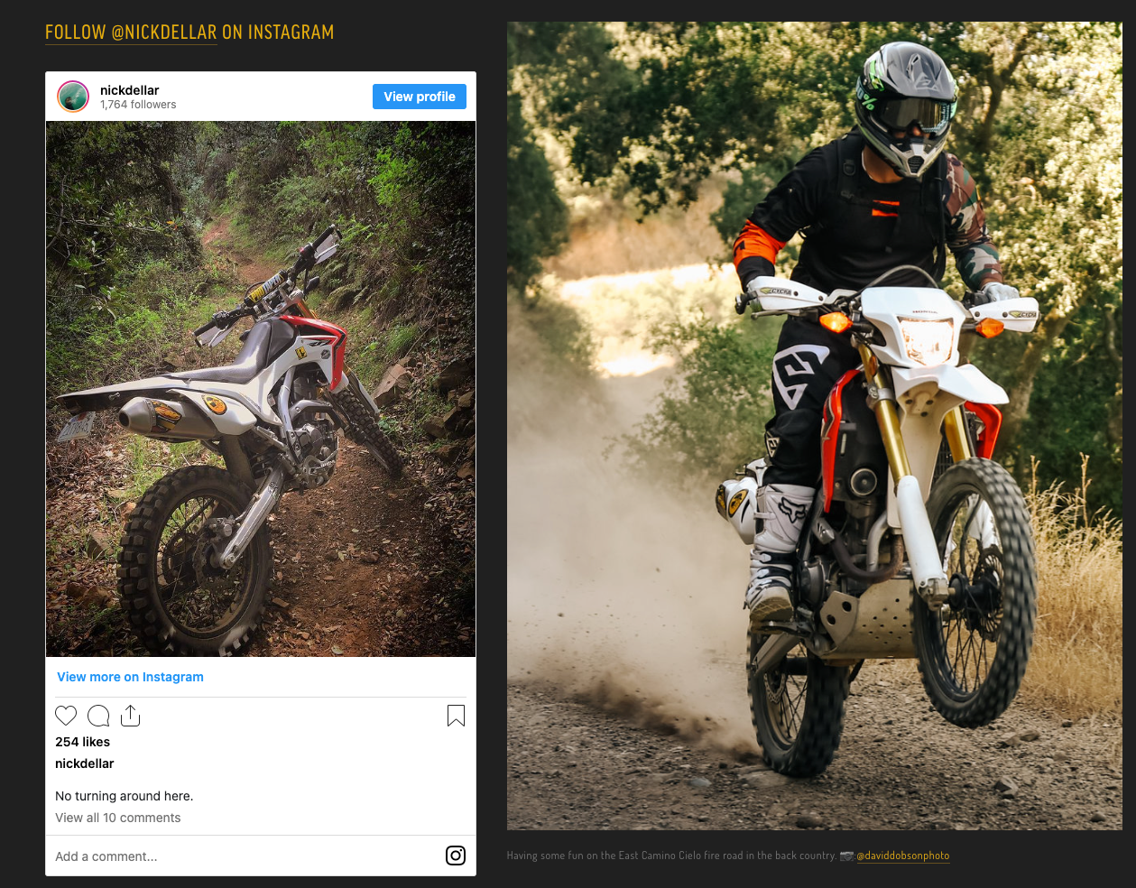 Currently, I am enjoying quick day-rides up to Divide Peak, the trail above my home in Carpinteria, and continuing to learn new skills and techniques. The Honda, which is sometimes I feel a little under-powered and heavy, has been a great beginner bike for me. I’ve never really been too mechanical, or never grew up working on cars or bikes, but I’ve enjoyed learning and modifying my bike along the way.
