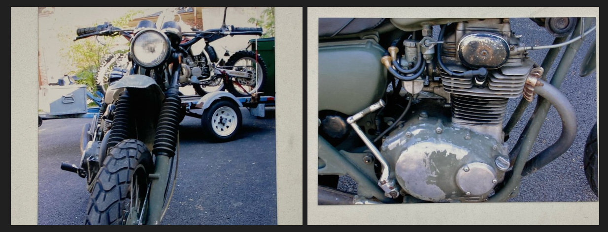 Back home, in the darkest corner of my parents' garage hid my future. A hand brush-painted, army green beast waiting to be reawoken from a very long slumber. For as long as I can remember, it lay in pieces, covered in dust and mouse droppings, panels and parts scattered across the floor, on tables and on an old Military Jeep in similar condition. After years of begging, my father finally relented, and handed me a dusty old box as he made me a deal: “If you can get it running, you can ride it.” Atop that dusty box was an old Clymer manual, pages ripped and water damaged, but it was all there. You know, one of those book things, do you remember those? Everything I needed to get the ole girl running again. It had been decades since that bike had seen daylight, but it was finally free, out of the depths of the gagare in all its disgusting glory, and it was all mine. After months of reading and research, in the time before google… Yes kids there was a time when we had to read actual books for information not just search it on our phones… I learned about timing and engine cycles, tuning and synching carburetors, setting points and finding electrical faults from mouse chewed wires. With a bit of help from my dad and some JB weld on the cylinder head and many hard lessons, she finally ran! Once that 1971 Honda SL350 fired up, that engine vibrated my very soul to its core. There was no turning back now. I was hooked forever.