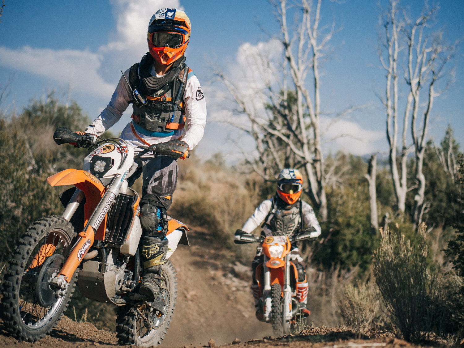 In between all that, there were a bunch of contests, a zillion skateboards, a lot of travel and a busted knee, now were at the year 2001, where I was working for Black Label skateboards as the team manager, that was epic… but more importantly, my son Hank was born. I delivered him and he was born with his eyes wide open, the doctor said that was rare and special, he looked right up at me and I (no joke) said “hey buddy, welcome to earth, lets party!” and anyone that know me, knows Hank and I RAGE! If I’m going skating, hank is going skating, if I’m going surfing, Hank is going surfing. But what about moto? Well that’s where our friend, Brannon Garner (funky fresh odis) comes into the picture. We moved right next door to some motocross maniac, he would always talk about moto, but I never let him know I rode too, there’s noting worse than the “oh bro, I used to kill it! The LBZ guys were going to hook me up, but I broke my wrist and had to hang it up” that guy… so I kept quiet, until we went on a family desert trip and on the last day he said: “try my bike, but go easy! Its not a toy, it’s a weapon of mass destruction!” I jumped on his KTM and instantly, all the madness came raging back! That was all it took; the die was cast! I came back to camp grinning ear to ear, and my poor wife, Tamara instantly knew. “oh no, here we go again”