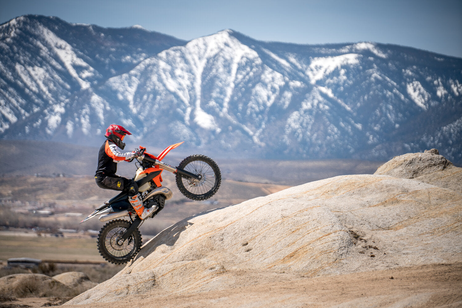 Prior to 2016, I had a career as a professional snowboarder and as that faded out, my boarding skills transferred into how I looked at dirtbiking terrain. Just like I would have for snowboarding, I began to look at features to gap, jump, or climb. Personally, I could care less about going fast. I think it’s all about how many different features I can find to hit! I believe in quality over quantity when it comes to enduro. I really enjoy riding stuff that becomes a group activity which were either all suffering together, pushing each other’s limits, or helping each other get up a difficult section. There’s nothing like sharing a good laugh at someone else’s misfortune on the trail! Some of my favorite adventures have been getting lost with Vic.